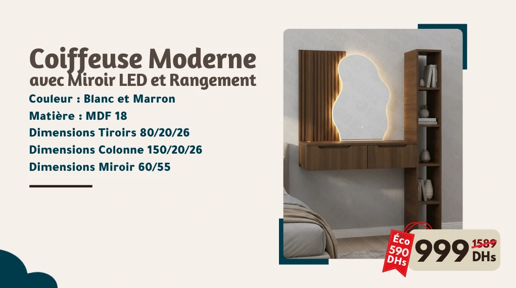 Coiffeuse Moderne avec Miroir LED et Rangement
