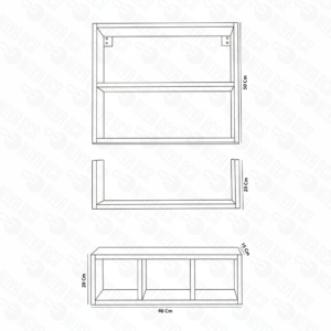 | Étagère Compartimentée (Dimensions) | 60 cm (L) x 20 cm (H) |