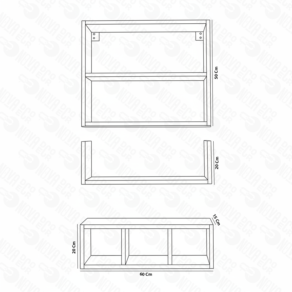 | Étagère Double (Dimensions) | 60 cm (L) x 50 cm (H) x 15 cm (P) |