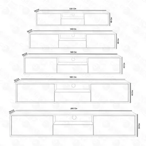 • Modèle XXL : 200 cm (L) x 50 cm (H) x 35 cm (P) – L’option ultime pour les home-cinémas.